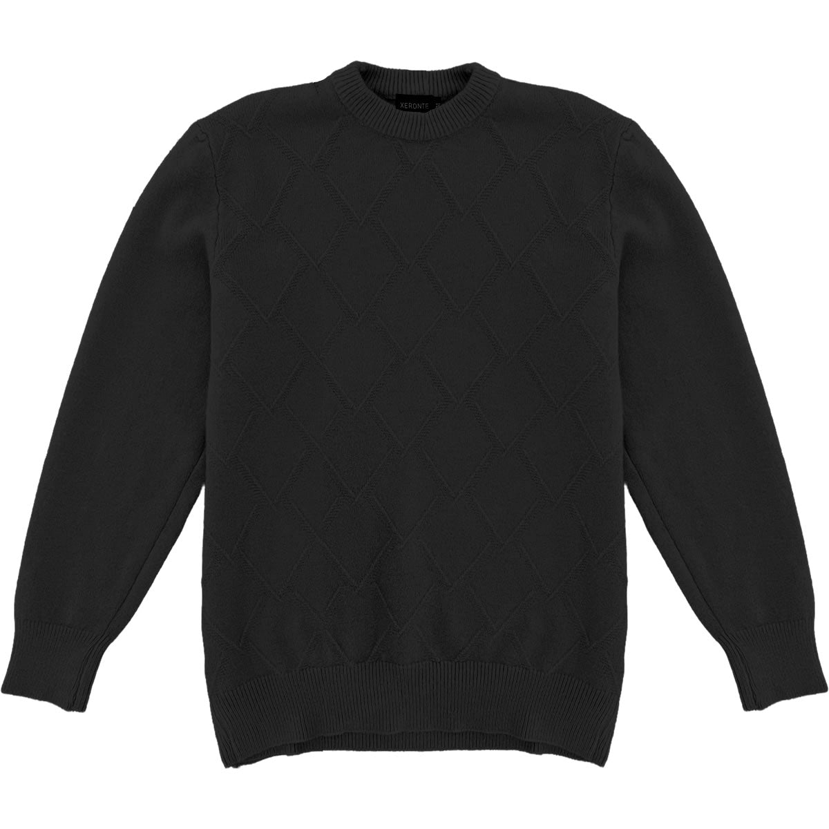 Black Mens Knit Diamond Pattern Crew Neck Sweater